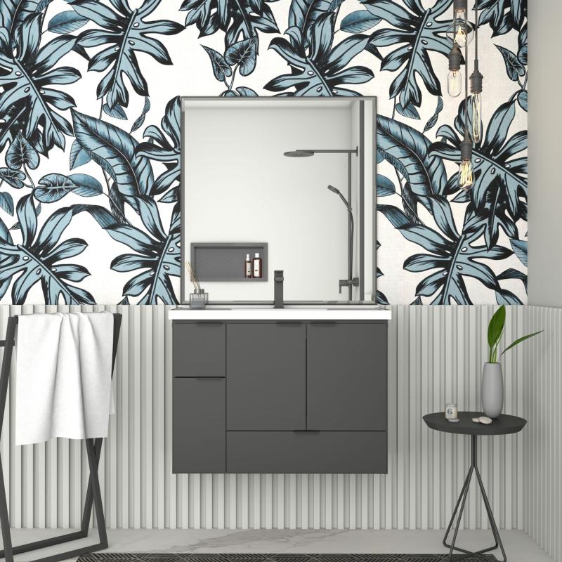 Vanitory Mueble Para Baño Colgante Cozimax Orquidea 80 Negro